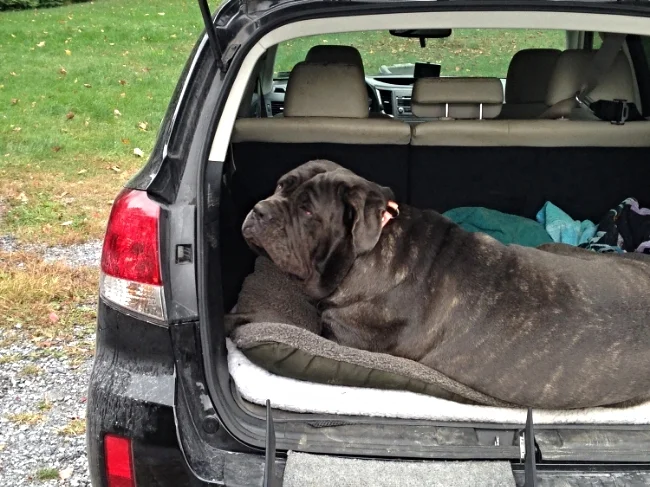 Because Luna is a big dog, when she was still a pup, we began training her to use a ramp to get into the car. We knew that she would be much too large to lift her into the car. We also knew that Neapolitan Mastiffs are unlikely to jump into the car on their own. They just don't have the agility of a Lab, German Shepherd. Plus, they are basically lazy and don't really like to ride in cars. The ramp has been a lifesaver, and if you have a large dog, I highly recommend using one. Even a young, agile dog, will someday become old, and need help getting into a car.